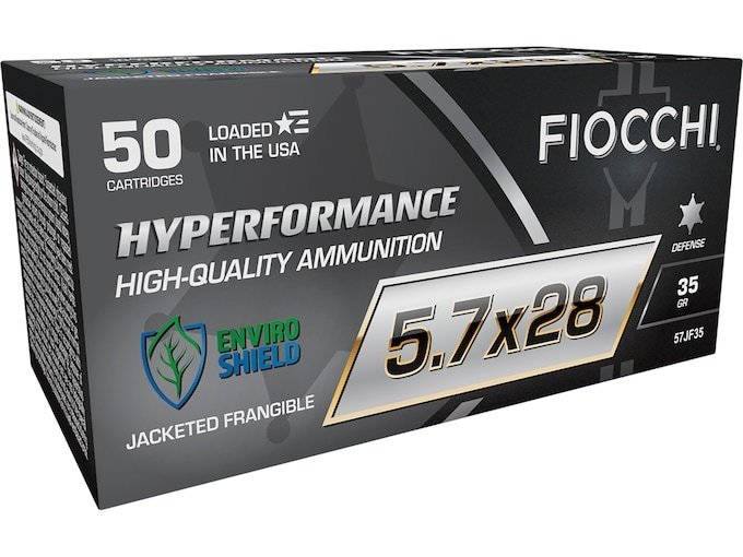 The Fiocchi Hyperformance jacketed frangible cartridge hosts a 35-grain copper core and copper jacketed projectile. Featuring a polymer tip to ensure proper feeding through all 5.7x28mm chambered firearms, this lead-free cartridge delivers rapid expansion to prevent over-penetration. Whether fired from a handgun or a carbine, this cartridge offers consistent ballistic and terminal performance for defense, hunting, and range applications.
